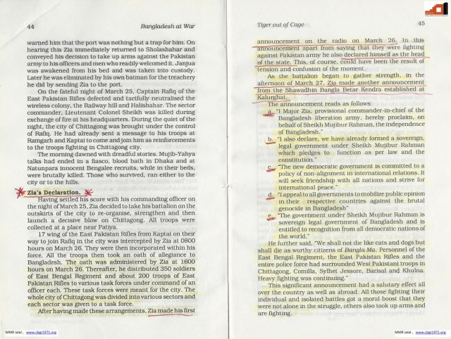১৯৮৯ সালে Academic Publishers থেকে প্রকাশিত মেজর জেনারেল কে এম শফিউল্লাহ পিএসসি বীর উত্তম লিখিত BANGLADESH AT WAR বইয়ের ৪৫ নম্বর পৃষ্ঠায় লিখছেন, মেজর জিয়া ২৬ মার্চ তার প্রথম রেডিও এনাউন্সমেন্ট দেন !